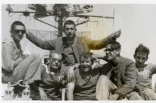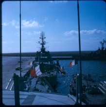 Le Béarnais à Alger juillet 1959. A gauche Lucien Gault dit Charly boulanger, Pierre Martin écouteur mais faisant office de matelot commis et un camarade miltaire chez les Zouaves Charly actuellemnt à touln et Pierrot à Bégard