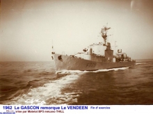 1962 : Exercice de remorquage. Le Gascon remorque le Vendéen. (Photo : Mlot mécan Thill)