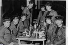 Une belle brochette de "boum" juchée sur la tourelle de l'affut 3 de 57mm. Cette photo a été prise au début des années 70. Nous y reconnaissons les QM et Mlots Agez, Herbaut, Gavello, Colleno et Cellier, quant au dernier, hélas son nom m'échappe. Il s'agissait d'un appelé du contingent.