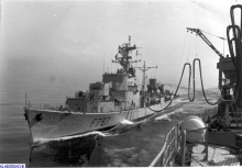 10 . 1973 : En Océan Indien, Le Gascon se présente pour un ravitaillement à la mer.