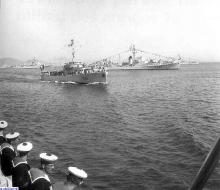Le président D. Dwigh Eisenhower , passa les navires en revue, en remontant les deux files à bord d’un croiseur portant sa marque de commandement. (Photo et commentaire : Jean Salducci)