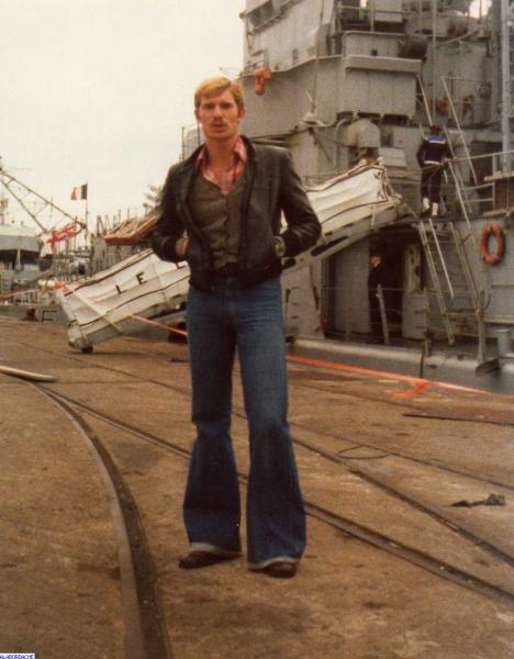 Le Lorrain à Liverpool. Ce sera sa denière grande croisière avant son désarmement. Le QM1 G. Dardé.