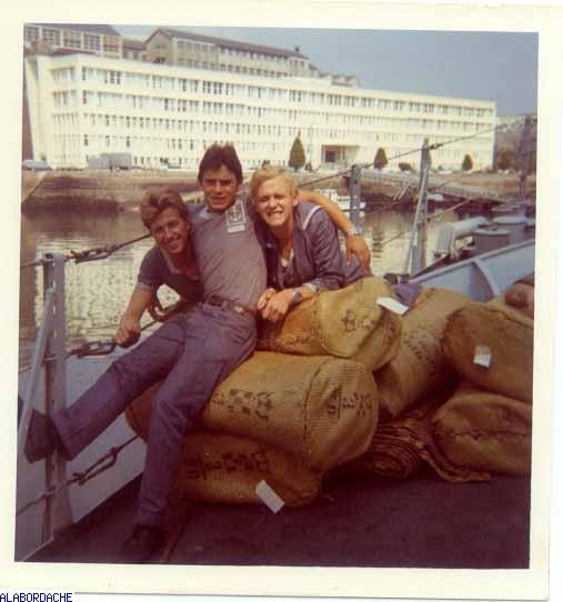 A Brest, sur la plage avant : G Gauclin, P.H. Vaudrion et G Bisin.