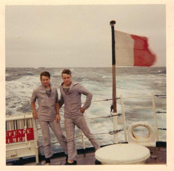 Sep 1966 - Tempête en mer d'Iroise. Je suis à gauche, à droite Daniel ABELI je crois.