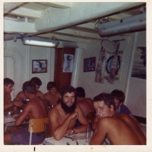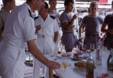 1ère mission du BH2 Boussole dans le golfe de Guinée=01/01/65-pot avec le pacha Letourneau sur la plage Ar. ( Abidjan, quai des bananiers)