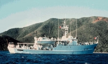 Le bâtiment hydrographique de 2ème classe La Boussole , à quai à la Pointe Chaleix en Nouvelle Calédonie en 1982 et 1983