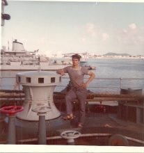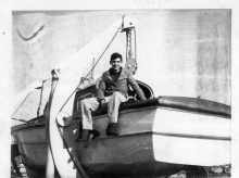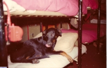 "Skippy", la mascotte du bord en 1974, sur sa bannette, poste avant à babord. (photo X)