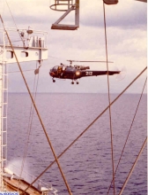 Arrivée d'un hélicoptère "Alouette 3" pour hélitreuillage