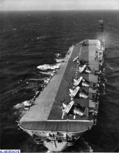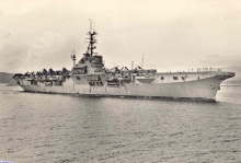 La porte-avions Arromanches (ex HMS Colossus) au début de sa carrière sous pavillon français.