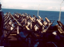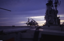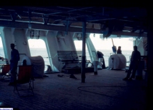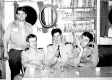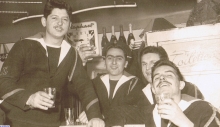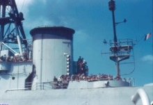 1964 : Les poulaines équipages à l'avant de l'Arromanches. "Il vaut mieux s'emmerder en société que de crever tout seul".