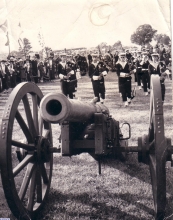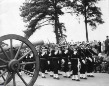 1964 : Remise de canons à Yorktown (USA) en présence du bagad de Lann-Bohoué.