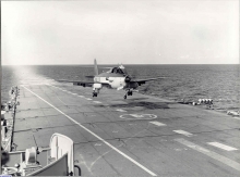 Ecole d'appontage en 1970 : Un "Fouga" se pose