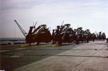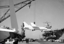 1964 : Les premiers "Crusaders" embarquent sur sur l'Arromanches qui va les conduire en France. Ils seront en service sur le Clémenceau et le Foch jusque dans les années 90.