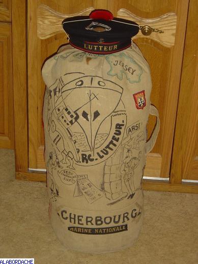 Le bachi du papa et son sac de marin. Il est complet, tenues de travail de sorties, caban, les "blancs"...etc... brosses, plaques de marqage, et même les planchettes 25 x 25. SAC COMPLET !...