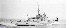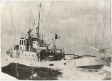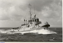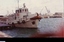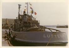 Vue de la plage arrière du Lutteur, à son poste habituel dans le port de cherbourg en 1974.