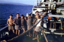 Diner sur le quai avec l'équipage du Robuste La Réunion 1975