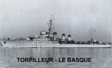 Le Basque à Brest en 1946. C'est l'un des rares torpilleurs de "1.500 t" ayant survécu au second conflit mondial.