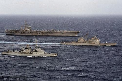 Le Jean Bart, le Vicksburg et l'Einsenhower au large de Toulon