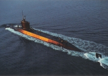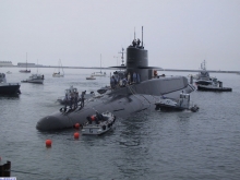 Le Redoutable devant la digue du Homet dans la petite rade de Cherbourg.
