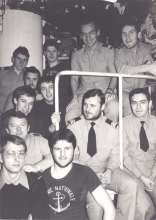 Tonnant bleu (1997 / 1998). les OMS dans la soute à béquilles (203). De gauche à droite: Médina, Blanchet, Oléron, Goulven, Bencquet, Dourin, Kerfriden, Thierry et Pavic.
