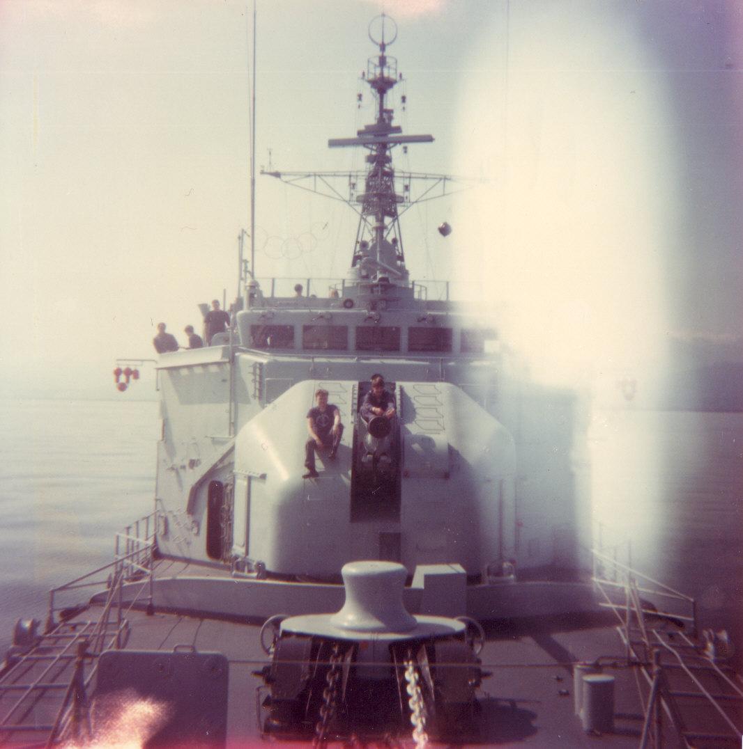 Photo prise a bord du B.S.L.RHIN le 3 mai 1977 .*exercice courrier. le boulanger chi't du RHIN DD