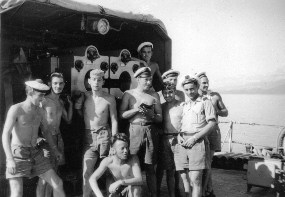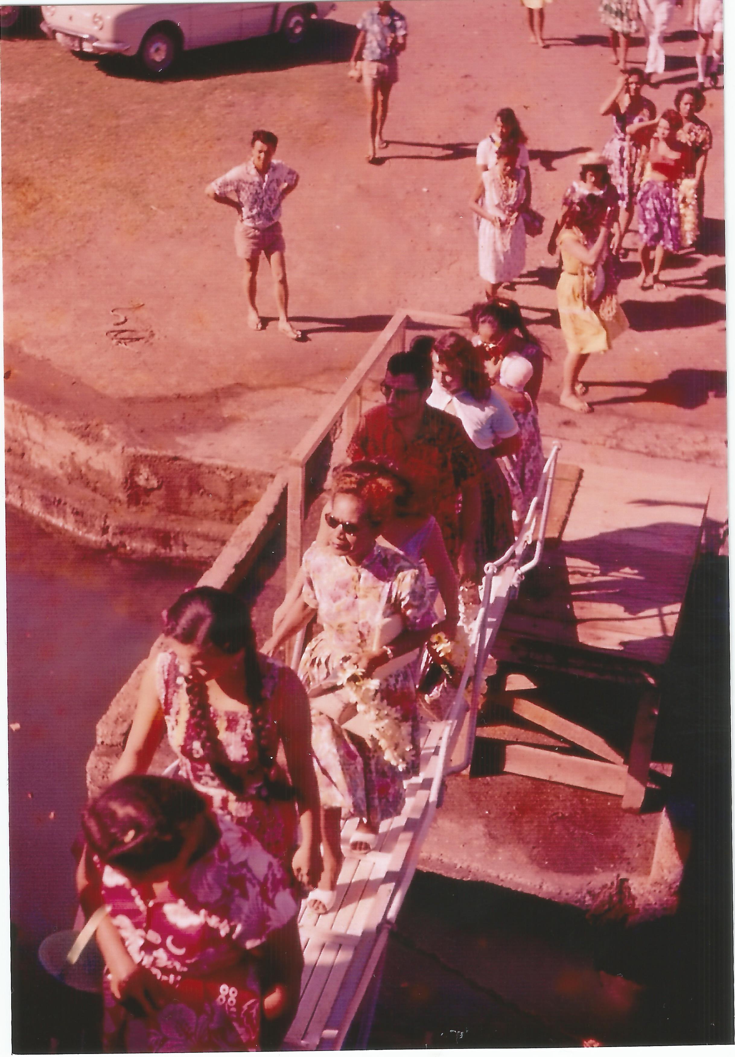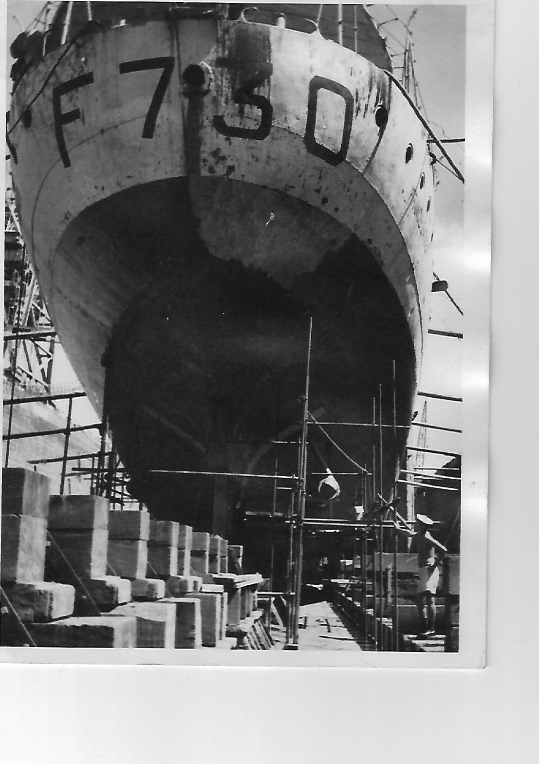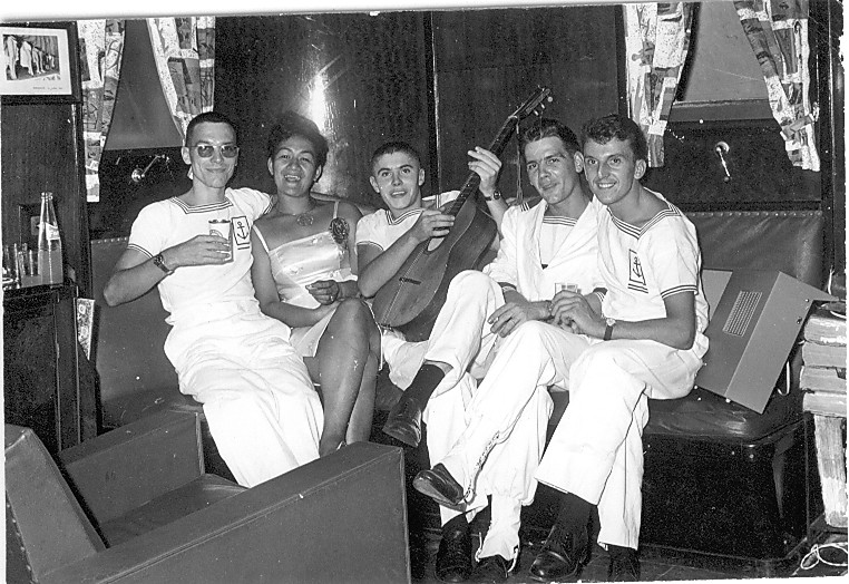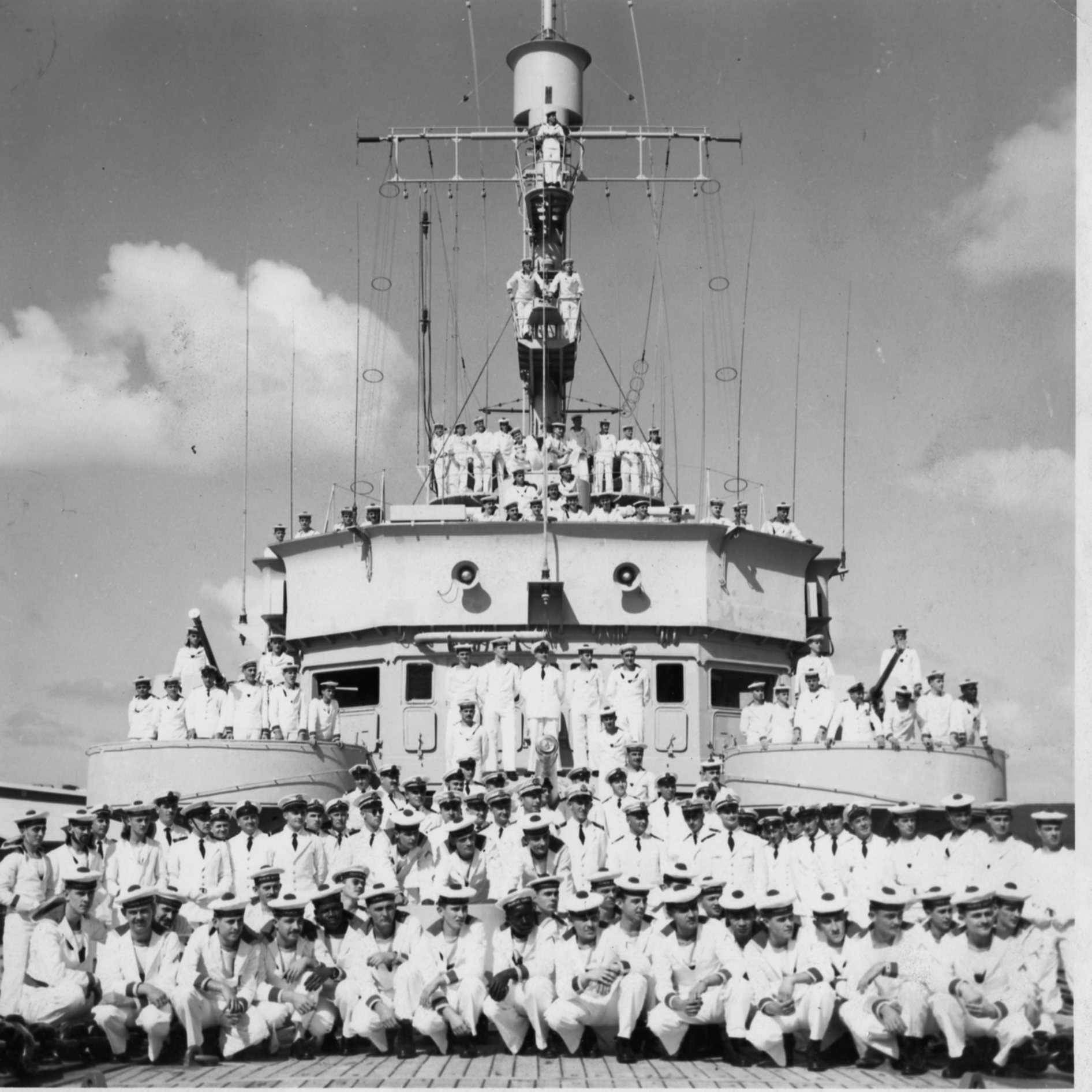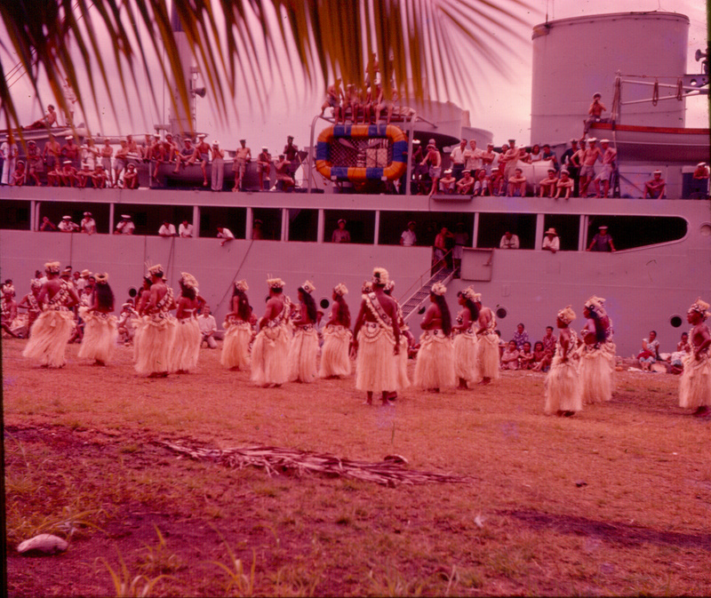 L'aviso francis GARNIER, à quai à Nouméa ( Nouvelle-Calédonie ) en 1957 pavoisé pour la fête du 14 juillet. Sous le commandement de l'amiral De Toulouse-Lautrec.