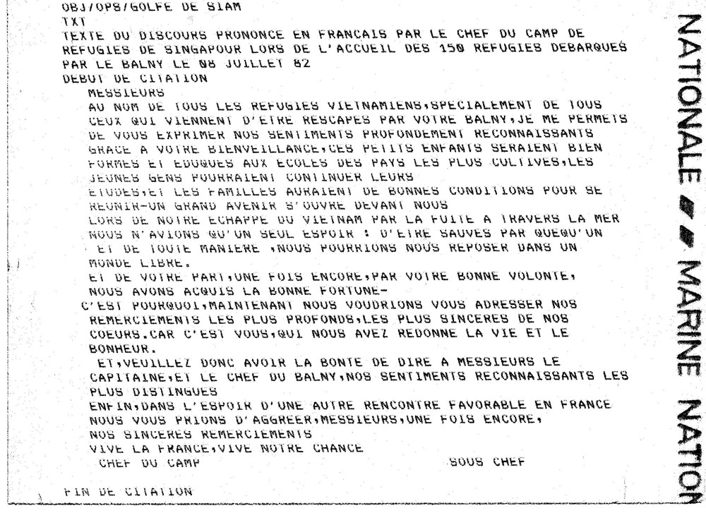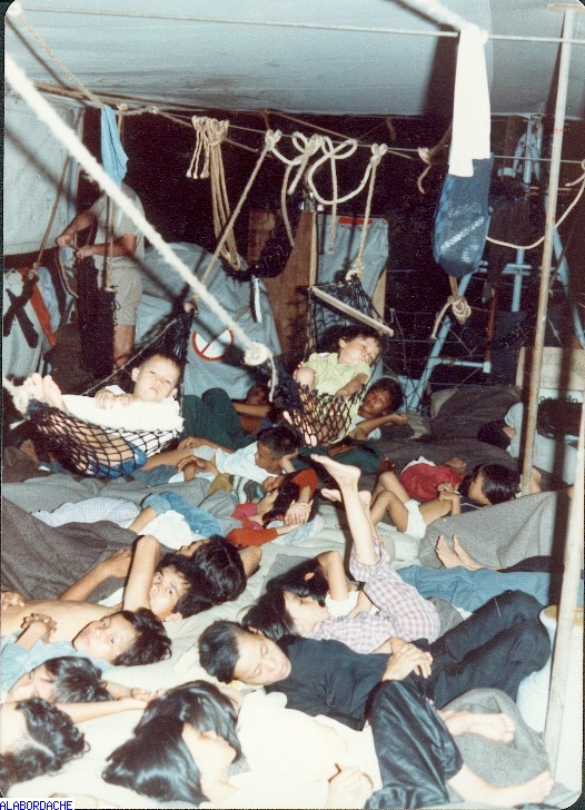 |  1982, un boat people approche du Balny.