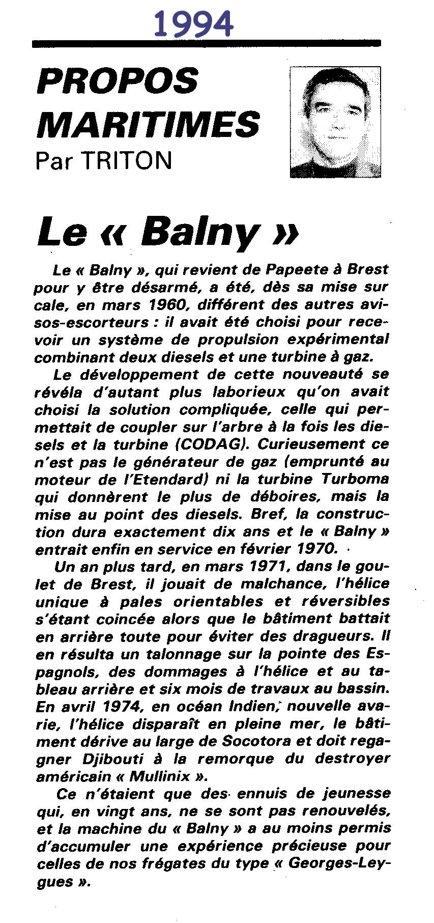 |  Le Balny devient bâteau amiral sous le commandement de l'amiral Petrochilot en 1970.