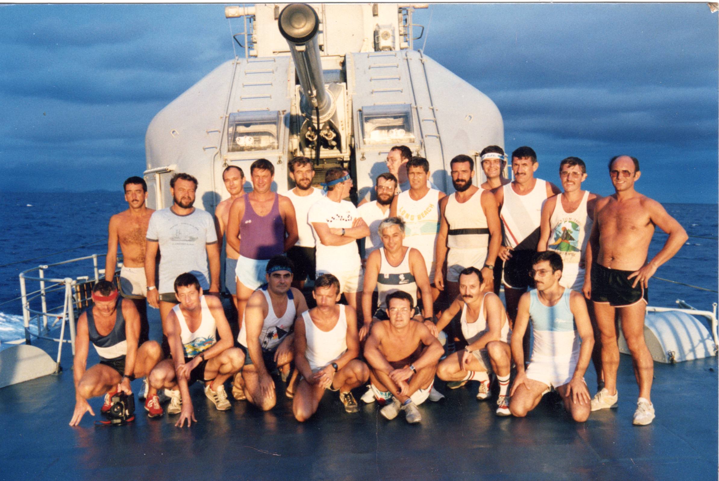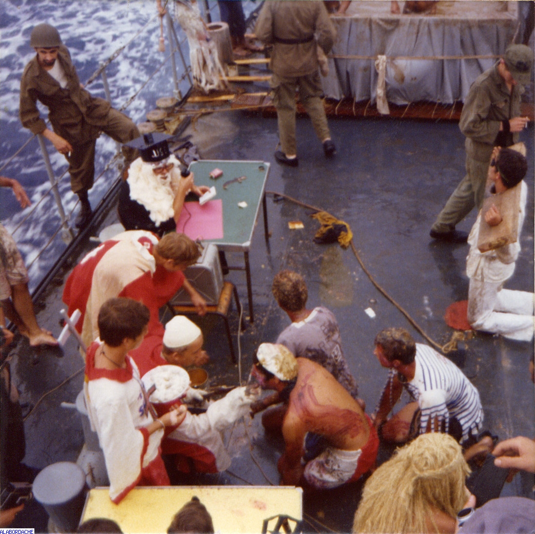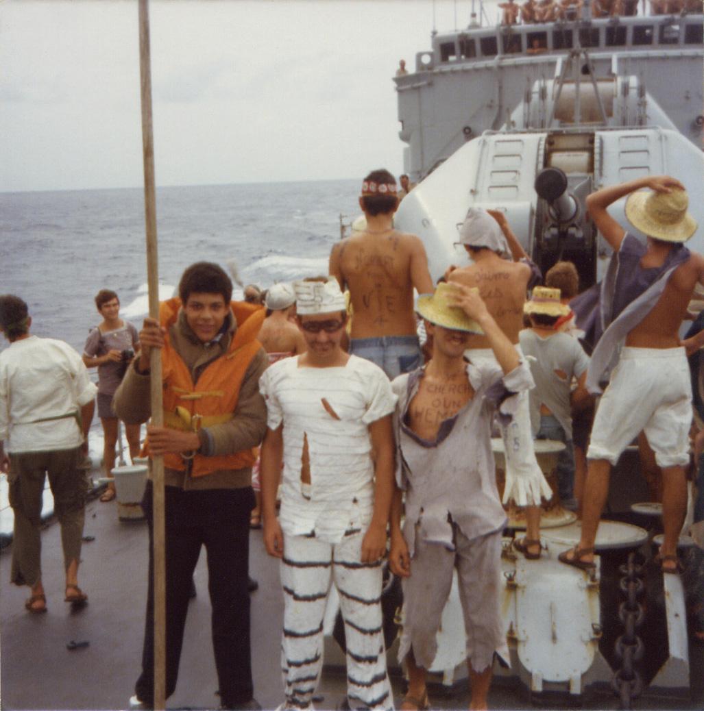 |  Passage de la ligne au retour en France - 10/3/75 - Les pôvres néophites (Photo HUE Jean-Michel)