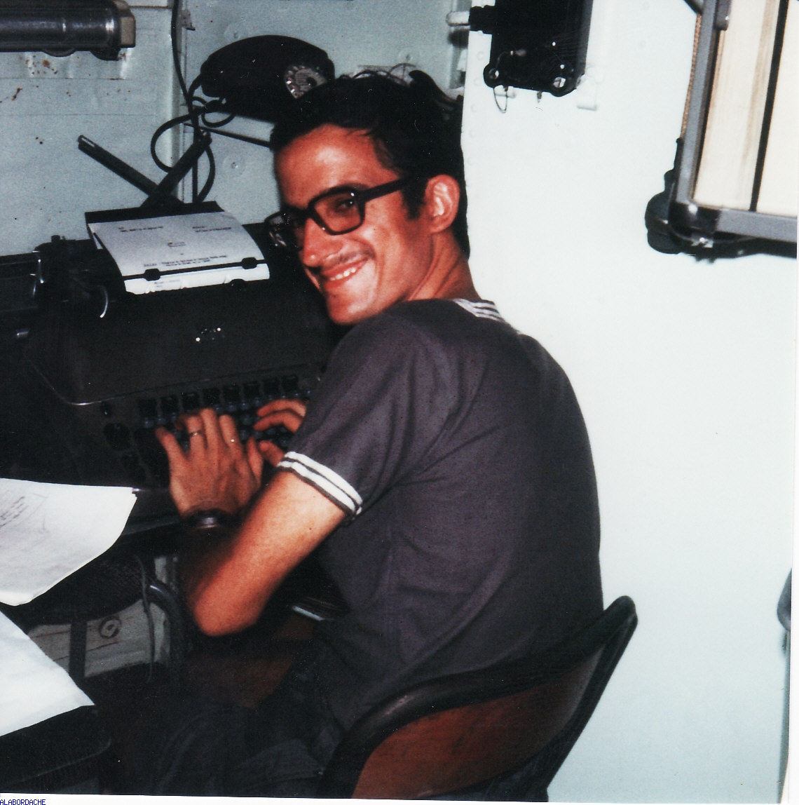 |  QM 1 secre LETULE à son poste de travail (Photo A. LETULE)