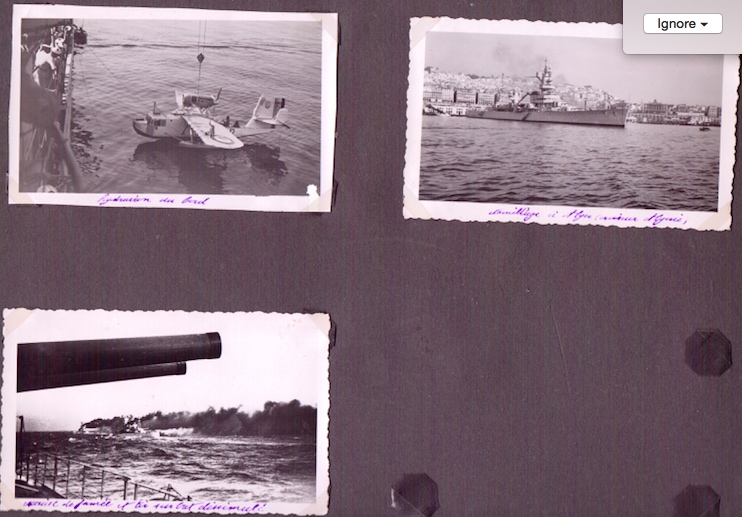 |  hydravion du bord - mouillage a alger croiseur algerie - exercise de fumee
