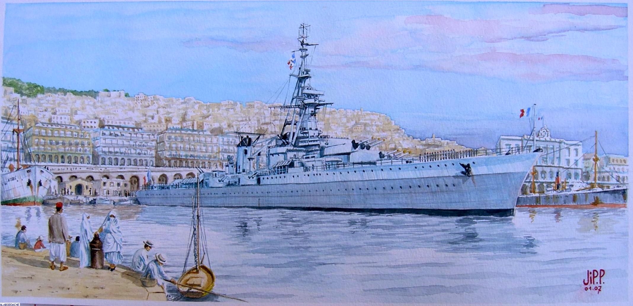 Le croiseur "Georges Leygues." Ã Alger en novembre 1944. (aquarelle de Jean-Pierre Paoli)