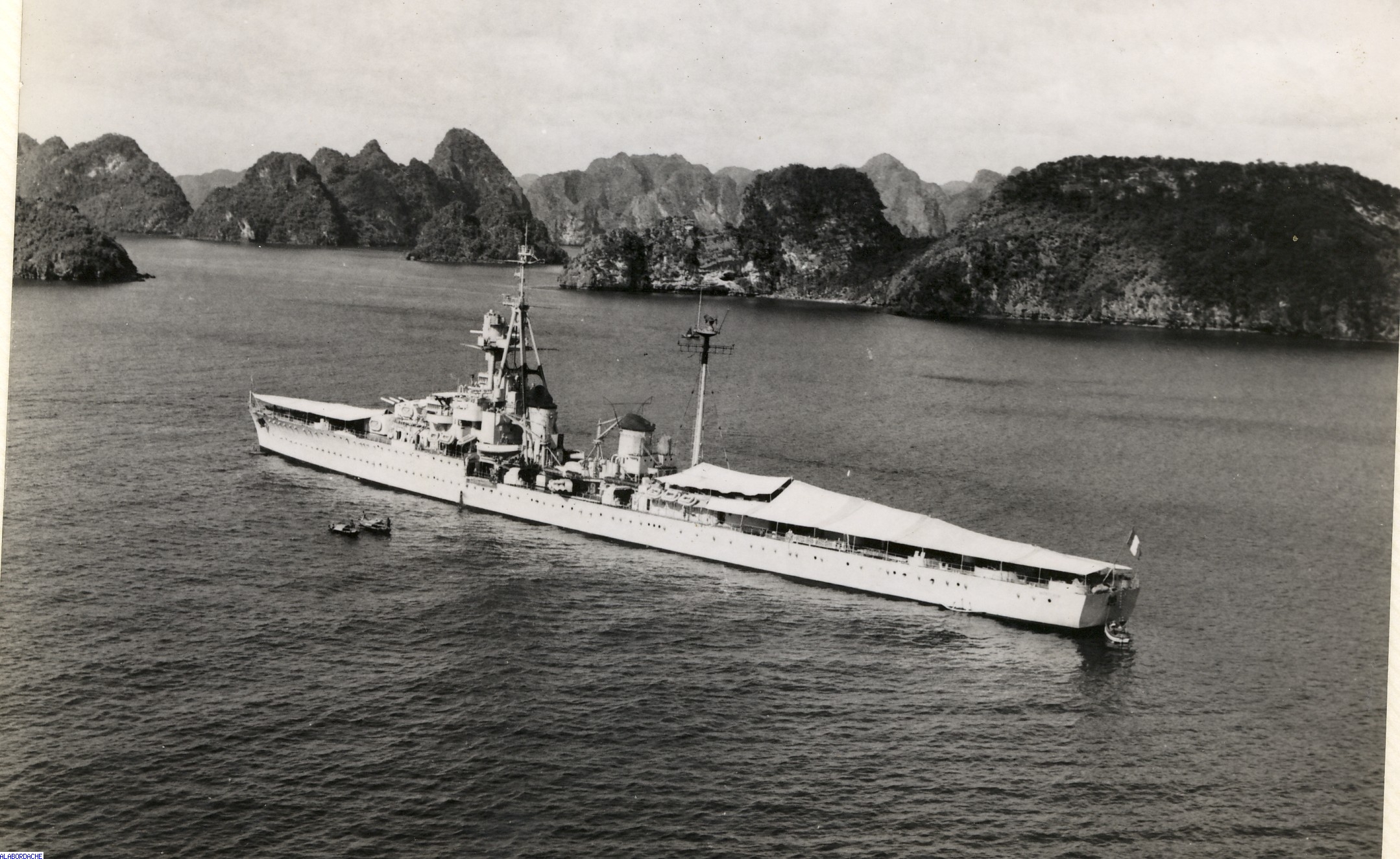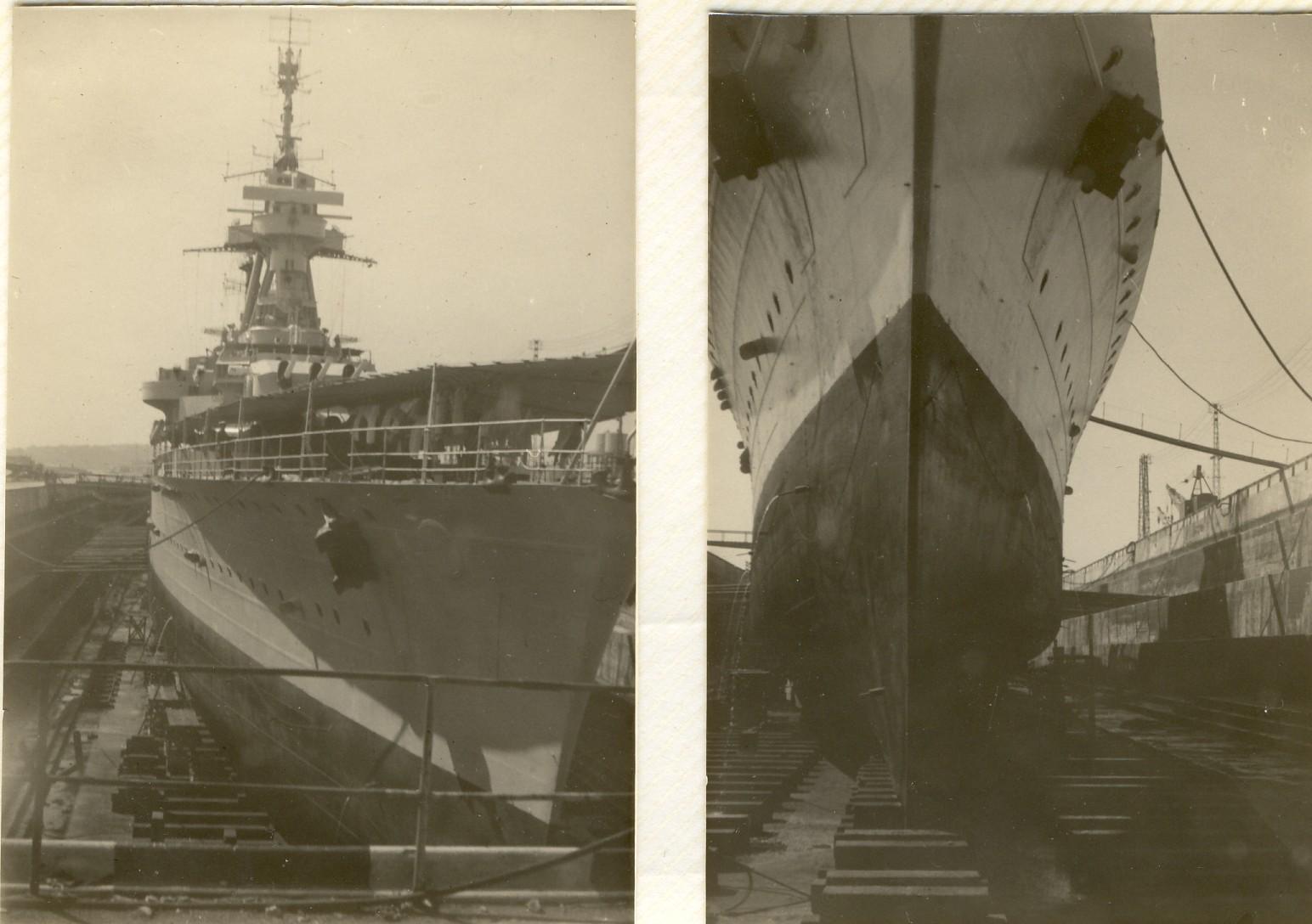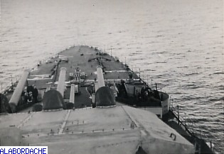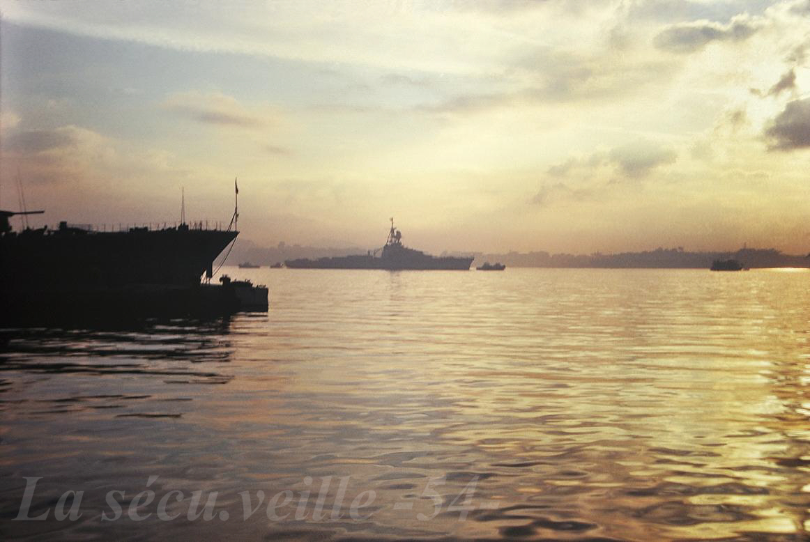 |  TOULON début 70, de la plage arrière du BSL RHIN, dernier "appareillage" du valeureux MONTCALM pour la démolition .