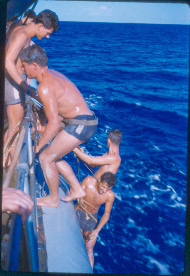 |  Lavage de la coque à vitesse réduite, la veille de l'arrivée à Papeete.