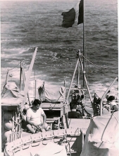 A bord du Frondeur en septembre 1969, au large des côtes d'Afrique