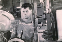 un mécanicien de quart aux moteurs pincipaux.