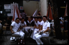 Repas d'escale en Afrique lors d'une mission en 1972