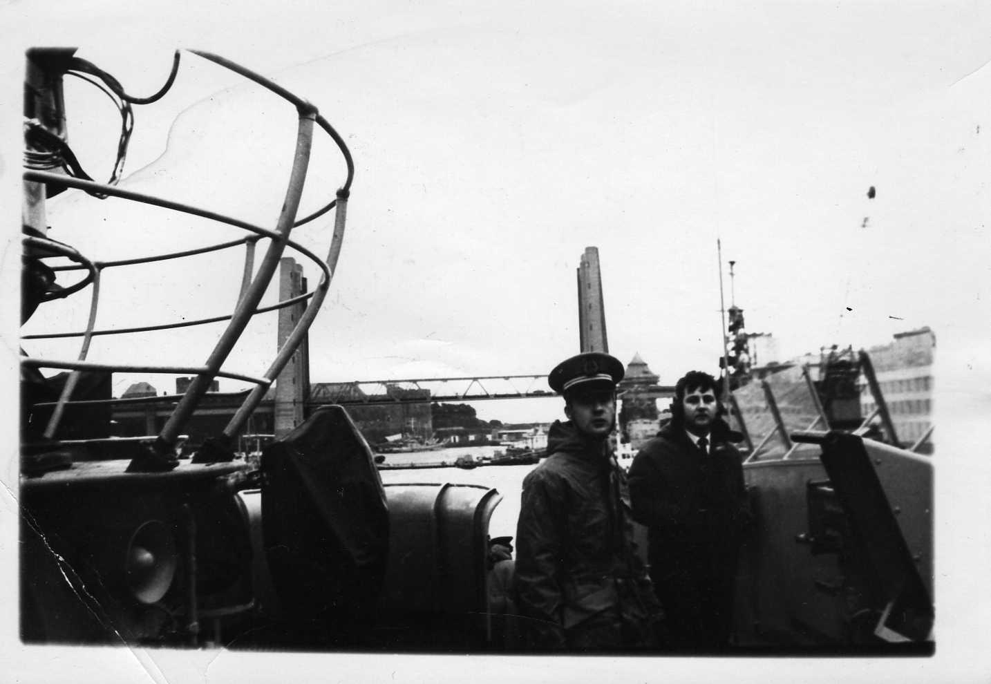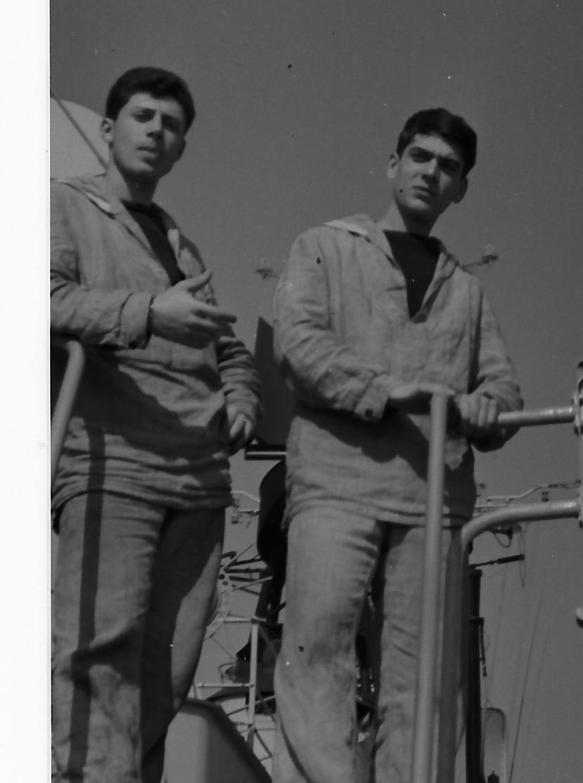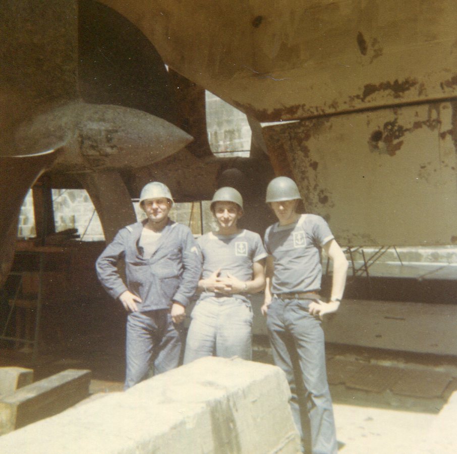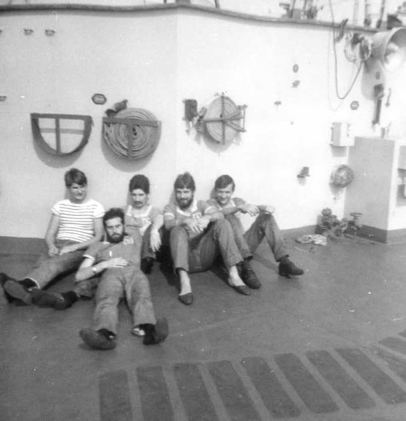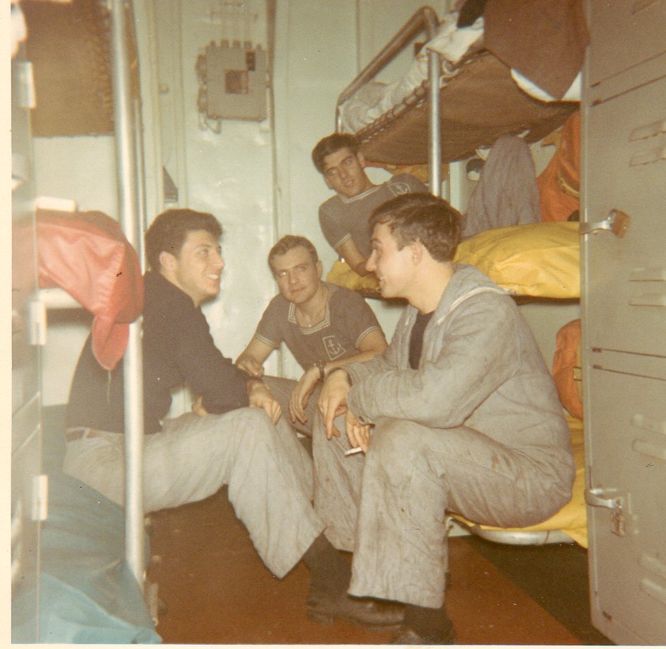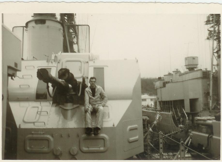 Au mouillage a Brest en 1969,les marins Auvray,Riviére et Lebrédonchel