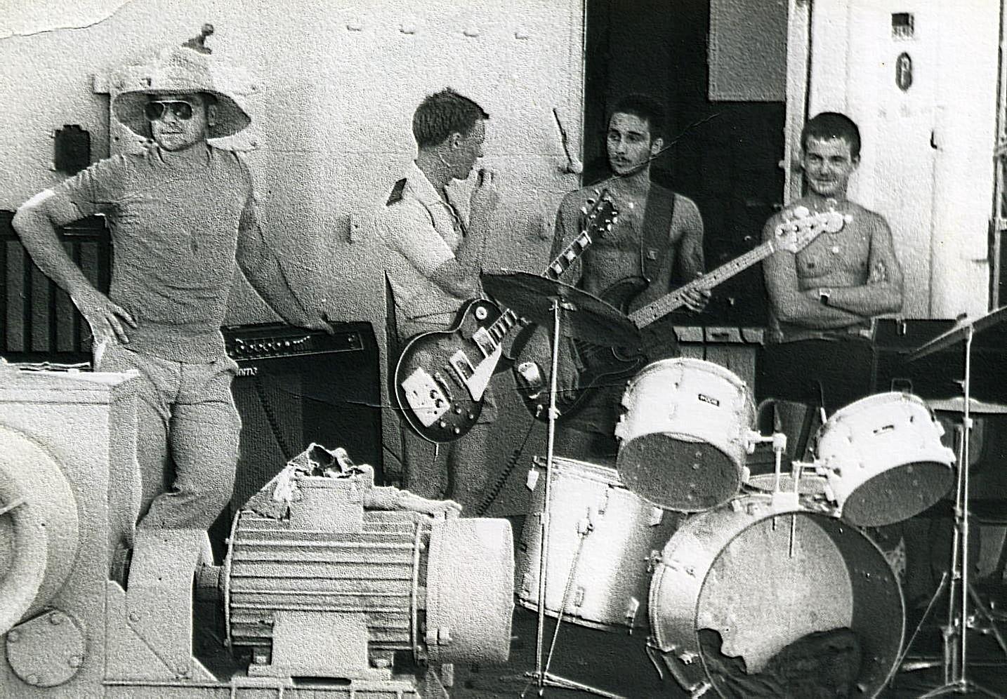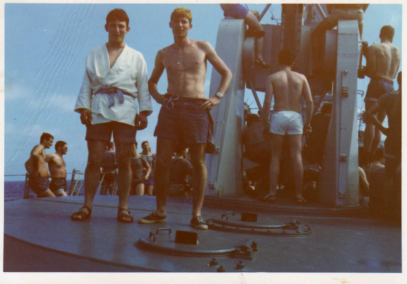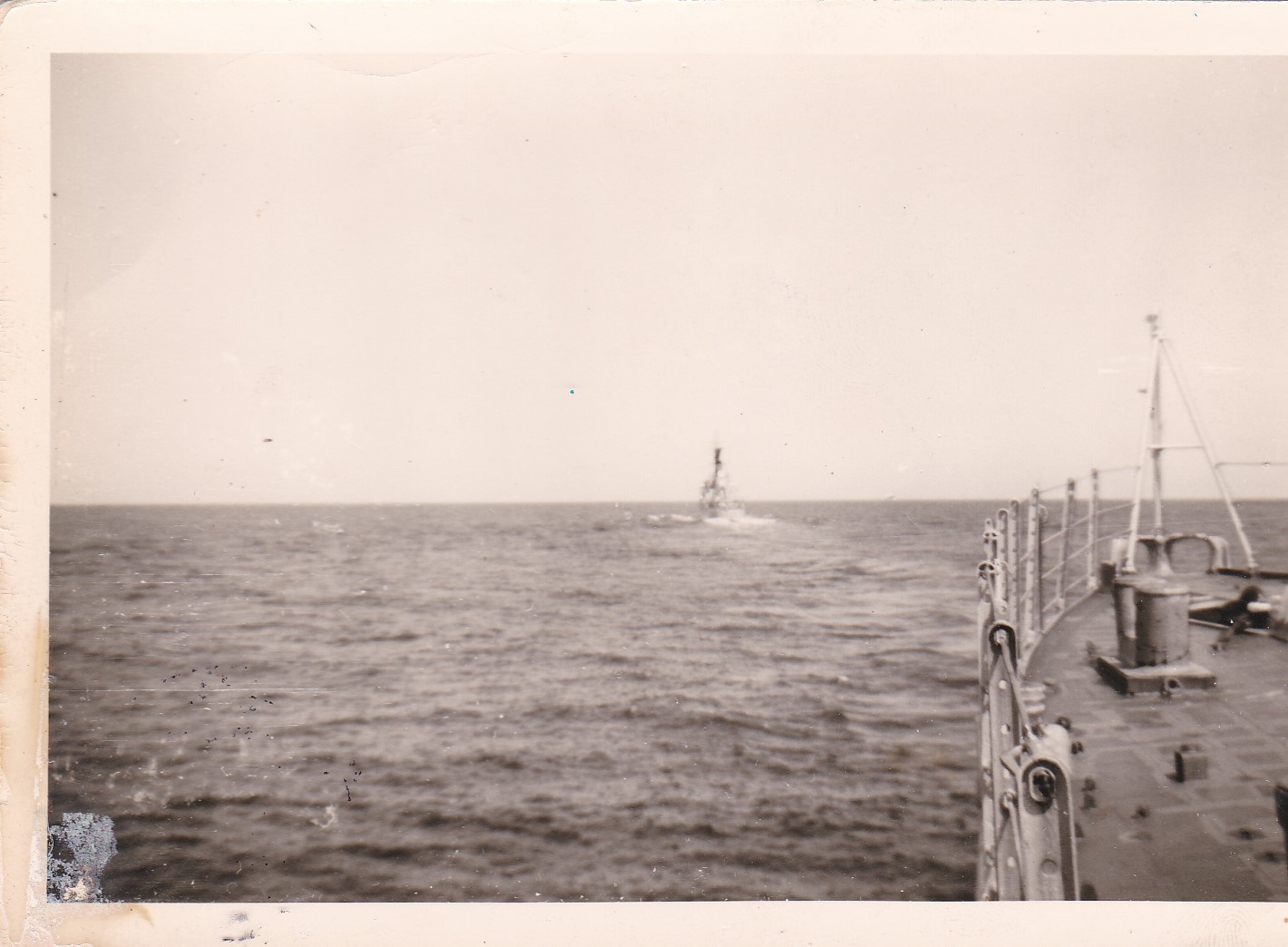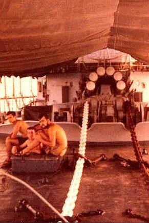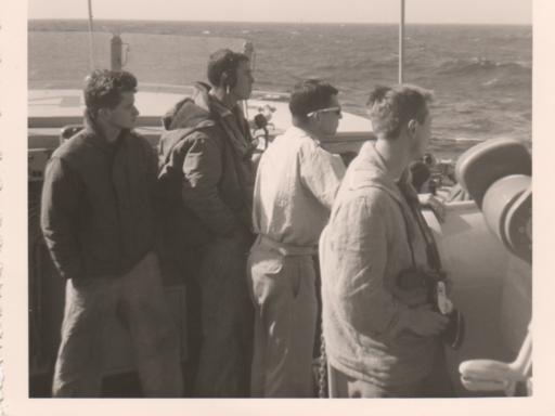 Au mouillage a Brest en 1969,les marins Auvray,Riviére et Lebrédonchel