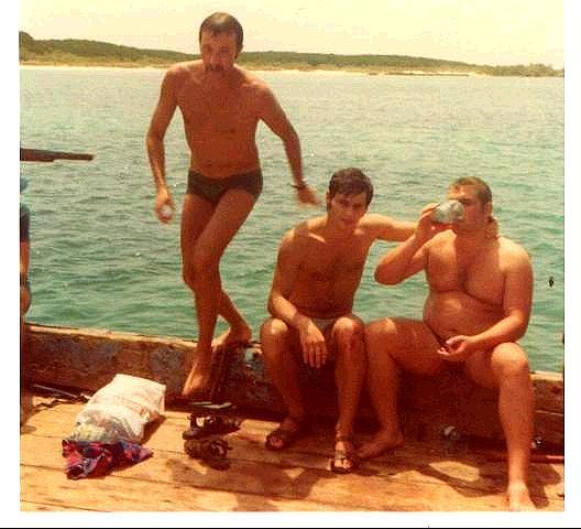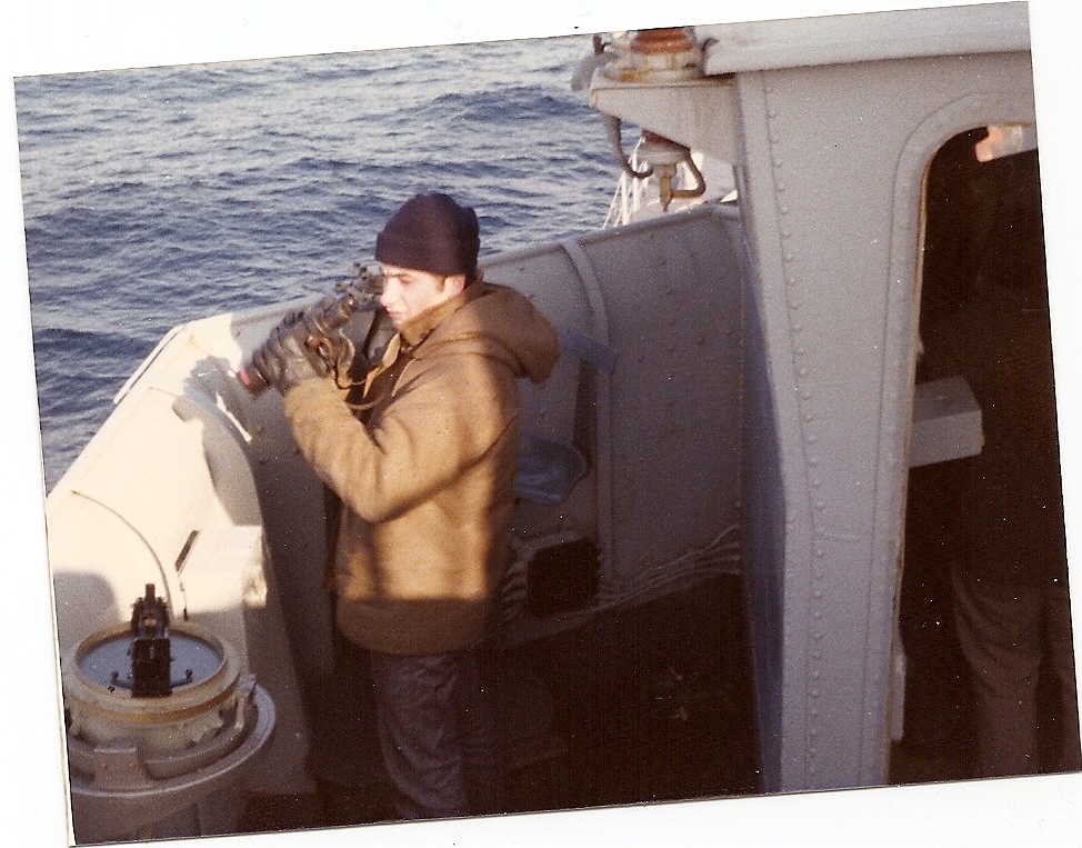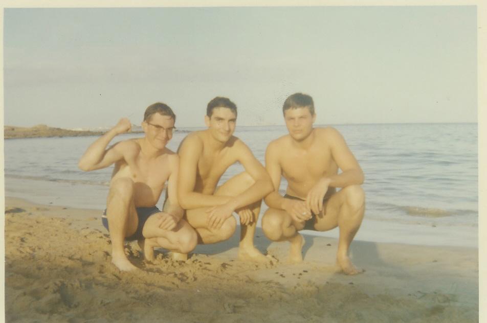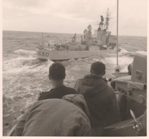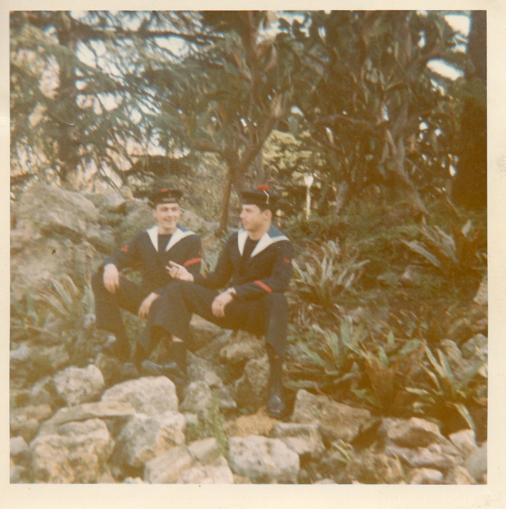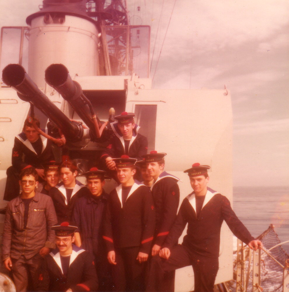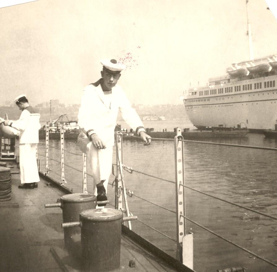 Au mouillage a Brest en 1969,les marins Auvray,Riviére et Lebrédonchel