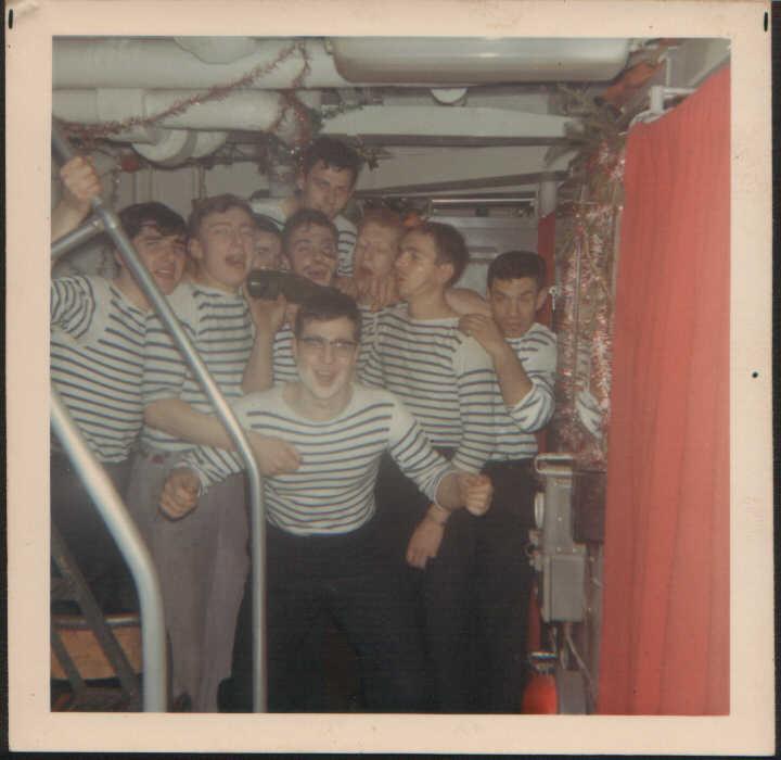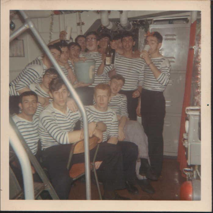 |  Surement un soir de fête à bord,en 1969 avec Benoit,Vallée,Allais?Glin,Cabon,Ourselin,Letortolec,Brizon,