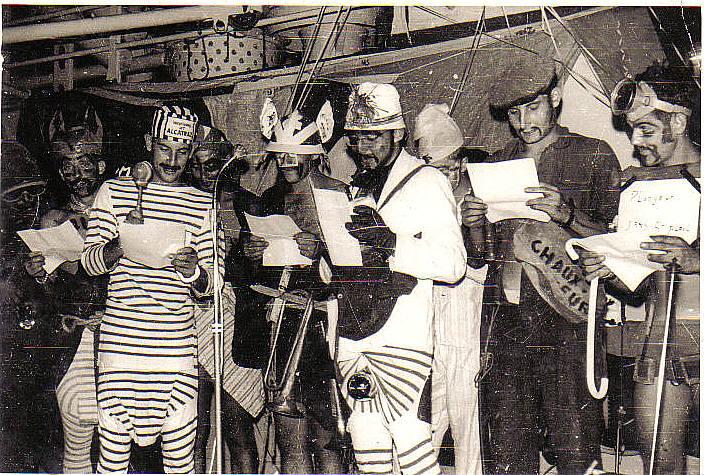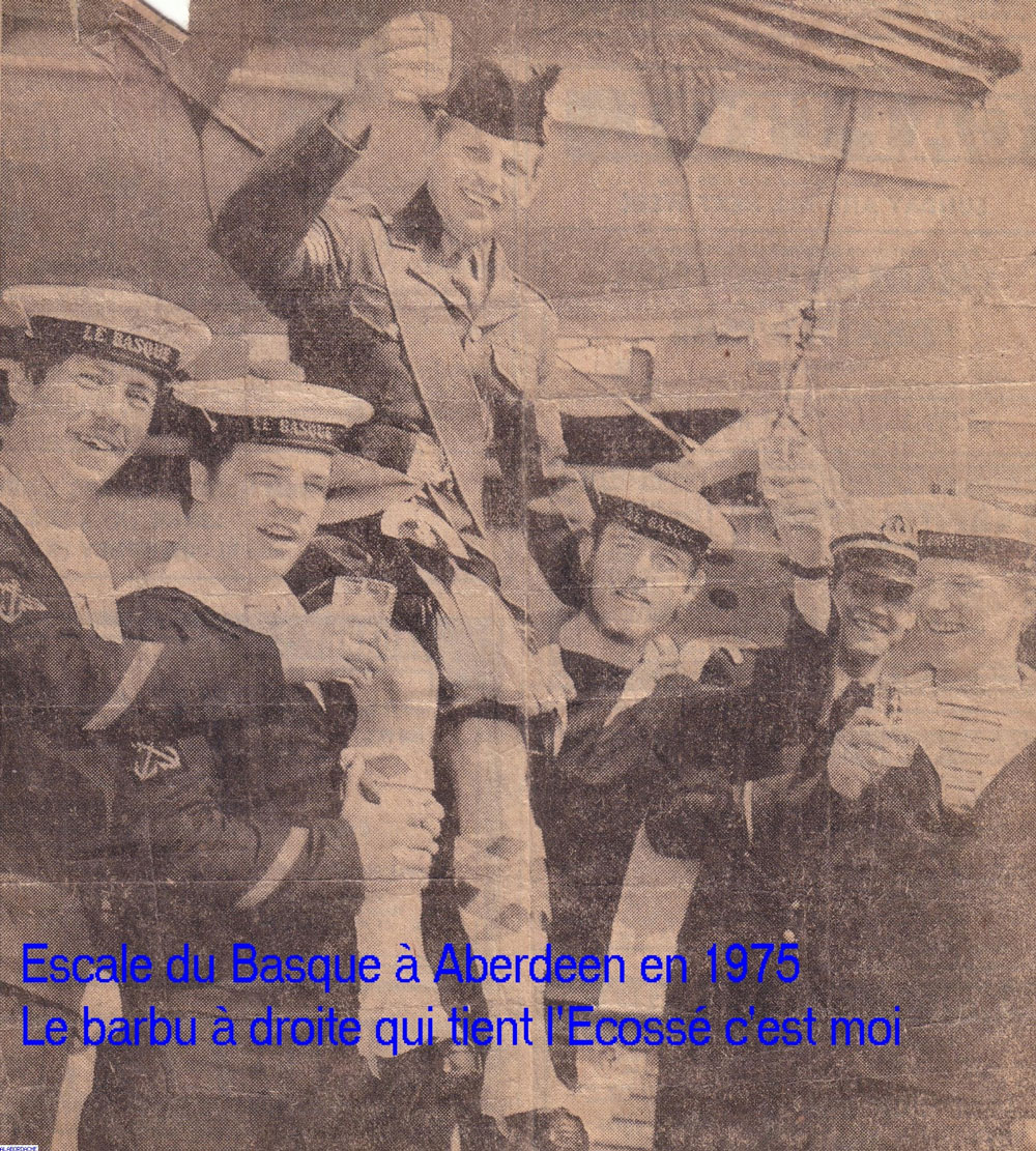 Escale du ER Le Basque à Aberdeen en 1975 (Ecosse), Le barbu au milieu qui tient la "cuisse" de l'écossais, c'est moi le QM2 Fus.