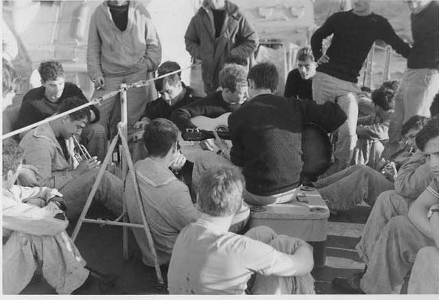 Estevant dit Jack Harris (mandoline) et Bonnefois (guitare) Soirée à bord du Basque à Mers-el-Kébir