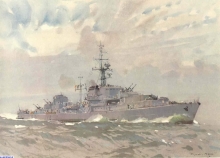 Vue d'artiste de ce qui auraient pu être les escorteurs rapides ( toile de Marin Marie)