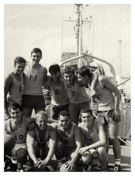 En mars/avril 1968 nous étions en carénage. L'équipage de l'Origny avait créé une équipe de basket. Je suis le n°11. Je ne souviens plus qui sont les autres....