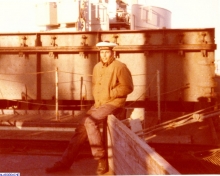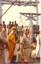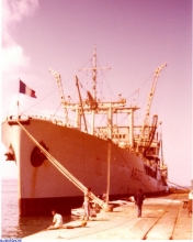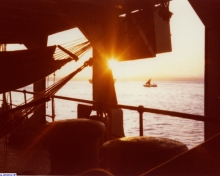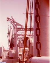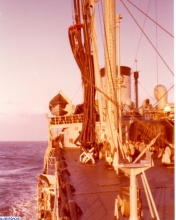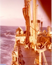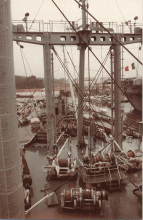 De corvée de congelés, au levé du jour, à l'ascenceur avant, à Djibouti en janvier 1975. Il faisait froid contrairement à ce qui nous attendait dans la journée.