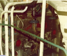 1960: premier équipage de La Saône après son passage dans la Royale. Ici le poste 6 dans le local barre de secours arrière.