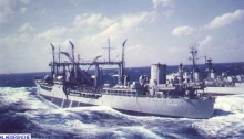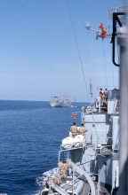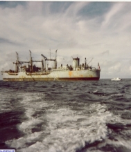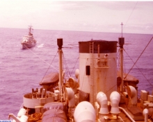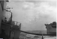 Ravitaillement en flèche du Balny (?) par La Saôsne en océan indien 1974-75.