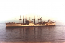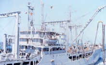 La Saône en 1963 alors que le pétrolier vient d'être transformé à Cherbourg en pétrolier ravitailleur d'escadre (PRE), comme La Seine, son sister ship