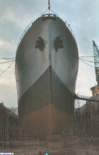 L'étrave de La Saône au bassin (Photo : A. Franc)